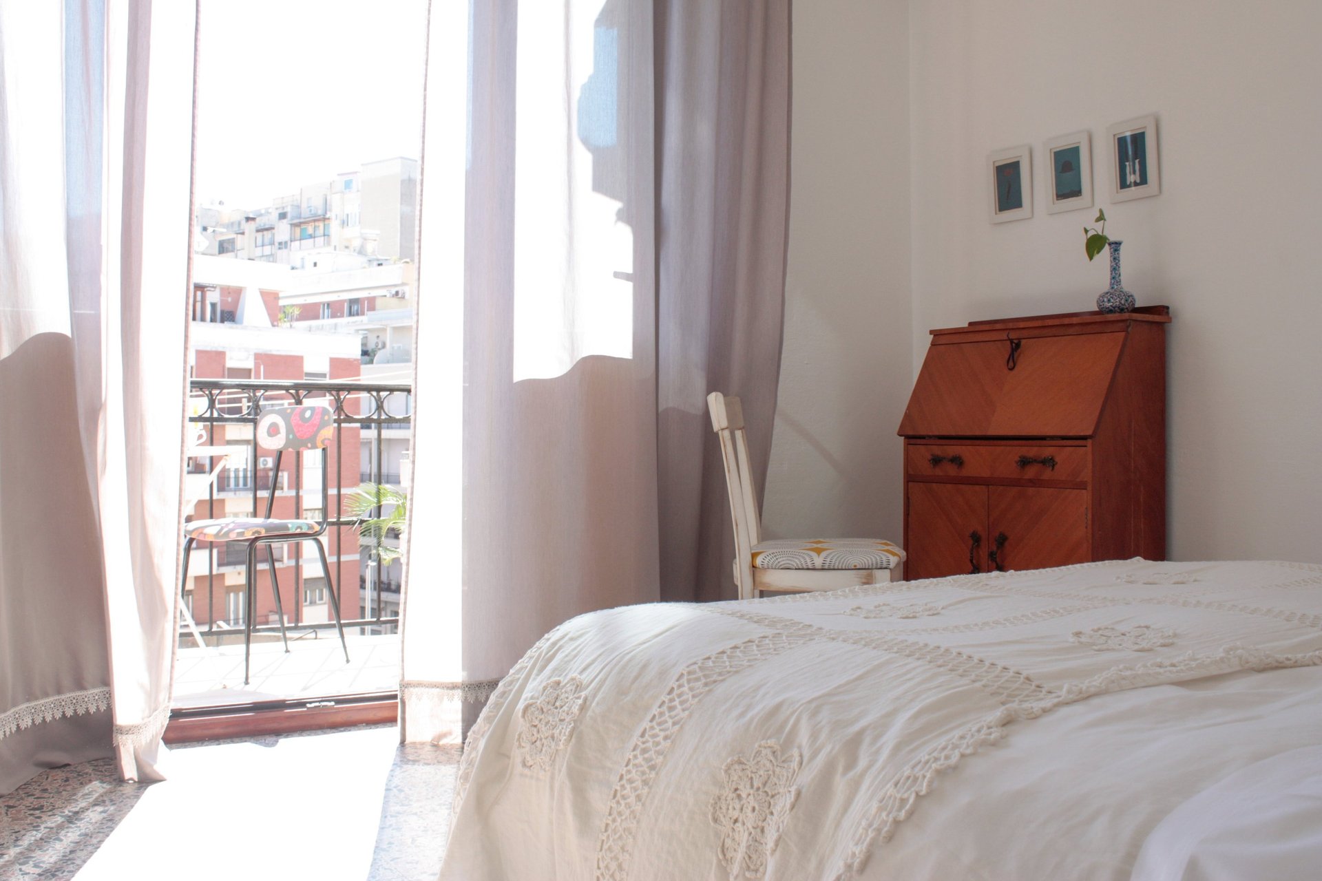 Uno dei punti di forza della camera è il piccolo balcone privato, affacciato sull’interno della palazzina: uno spazio aperto e silenzioso che permette alla luce di entrare generosa durante tutto il giorno. È perfetto per fare colazione all’aria aperta, leggere un libro o godersi un aperitivo serale in totale tranquillità.