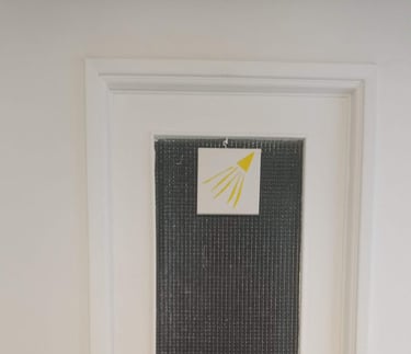 When you enter to the apartment your room is the first door you at your left, with a YELLOW SYMBOL.