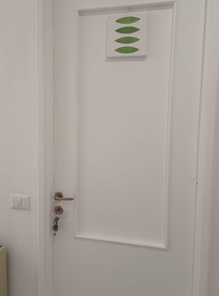 When you enter to the apartment, go straight and turn in your right, after the terrace, your room is the door at your left, with a GREEN SYMBOL.