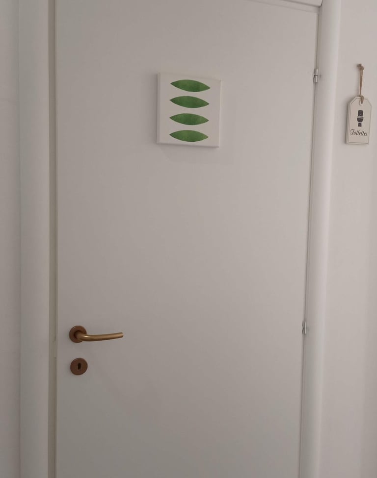 Your private bathroom have the same symbol (Green) and it's in front of the room.